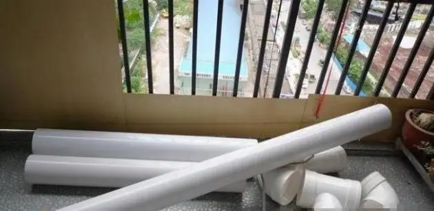 材料:PVC排水管。一根200MM的,一根160MM,两个200MM弯头、一个160MM的三通,一个200/160d的异三通,一瓶PVC胶水。